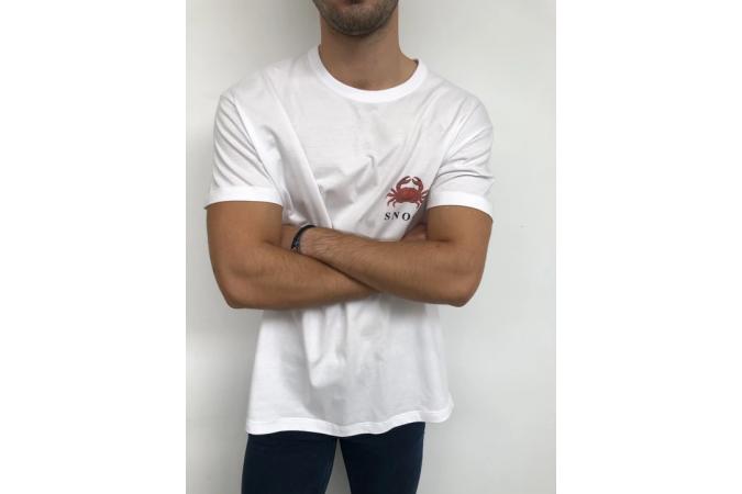 La Camiseta Crab Blanca está realizada únicamente con algodón de primera calidad acabado con un cuello redondo y unas mangas cortas para dar mayor ligereza y suavidad posible para adaptarse mejor a tu estilo de vida.