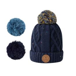 Este Gorro Jus De Pomme Navy es muy suave, con sus tres pompones intercambiables gracias a un potente sistema de imanes, para combinar tu sombrero con todos tus conjuntos y tu estado de ánimo.  Gorro de punto con amor sin material animal y materias primas 100% europeas. Diseños franceses exclusivos para aún más color y diversión. Características Gorro Jus De Pomme Navy Modelo: JUS DE POMME NAVY Tejido: Algodón y Lana Color: Azul Marino