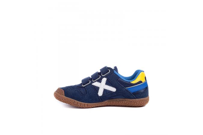 Las Zapatillas Mini Goal Velcro VCO 1493 Azul 8128493 elaboradas en piel serraje marina combinan con tejido efecto relieve del mismo color, los acabados en piel sintética blanca hacen que los más peques de la familia lleven un estilo más casual.